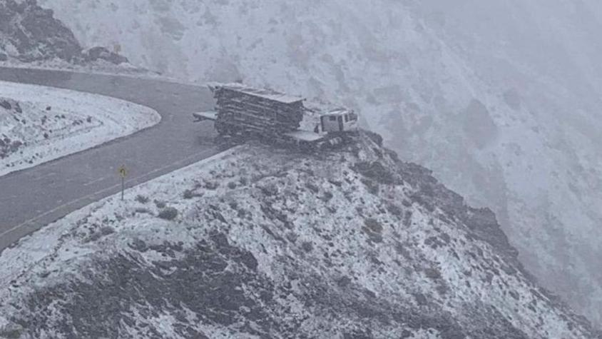 Un camión casi se desbarranca en la ruta 60 de Chile, debido a las intensas nevadas que se están produciendo en alta montaña.